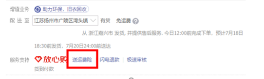 如您购买的第三方商家商品赠送退换货运费险(如下图),当商品需要退换货时,保险公司将会对退换货过程中产生的运费给予理赔,具体流程如下: